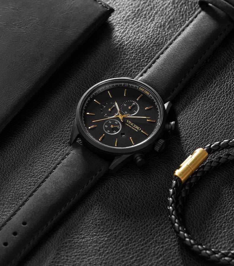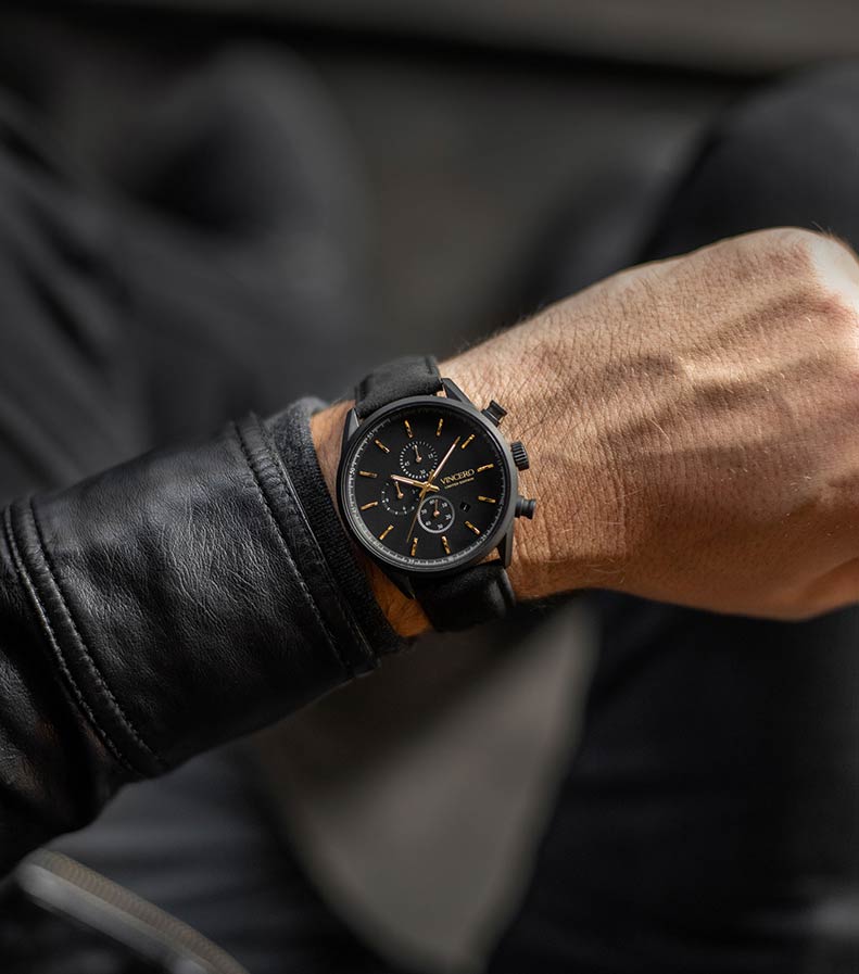 A fully matte black case and leather band give this watch all the edge and boldness you need to stand out from the pack.