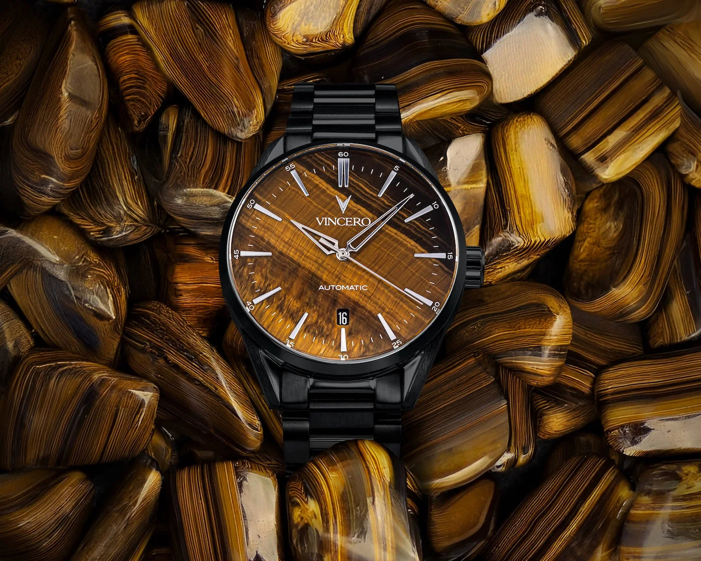- Dial: Tiger's Eye Gemstone