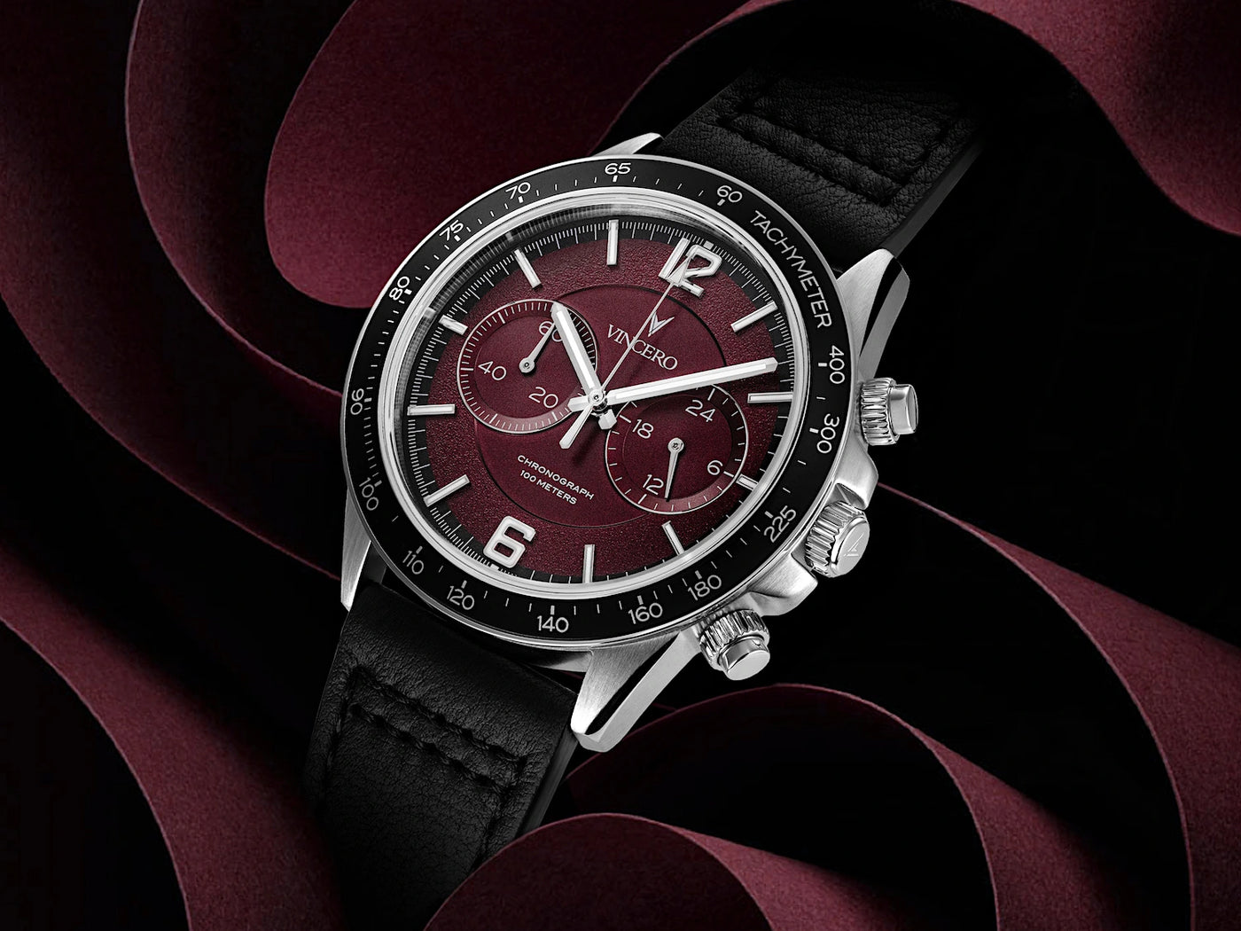 This is probably my fifth Vincero watch purchase. Looking at this watch, it is a very attractive timepiece. I love the face's rich blue face and the red hand dial as part of the Dual Time Pilot Watch is eye-catching. The only think I do not like about this watch is the sweat proof silicone strap. It is good that it is silicone maybe; however, the feel of it and actually strapping the watch on my wrist seems cheap. I understand why they offer purchasing different kinds of replacement watch straps during your purchase. I think the default band could be improved upon to actually coordinate with the look of the physical watch face.