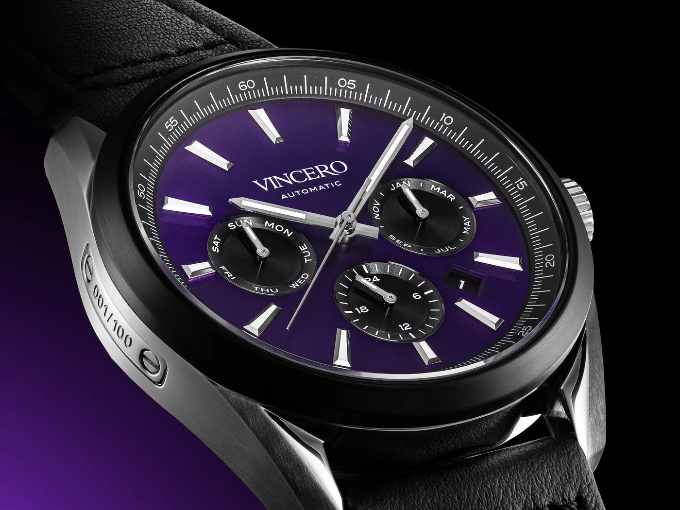 DescriptionA TRIBUTE TO TRANSFORMATION The AMETHYST watch embodies the moment where creativity collides with conviction. Its deep purple sunray dial catches every glint of light, refracting it across a bold, brushed surface. The result is a dynamic face that echoes the watch’s central theme: the transformative power of will and perspective. Framed by a silver case and black PVD bezel, the design punctuates the regal purple with aggressive black accents—from the three subdials to the matching Ecco full-grain leather strap. This bold contrast mirrors the phoenix’s journey through fire and shadow, emerging stronger with each rebirth. Limited to 100 individually numbered pieces, the AMETHYST stands at the apex of our Reserve Collection. It’s a rallying cry for those who refuse to be defined by the ordinary, who find in each challenge an opportunity to reinvent themselves—and ultimately, to rise.