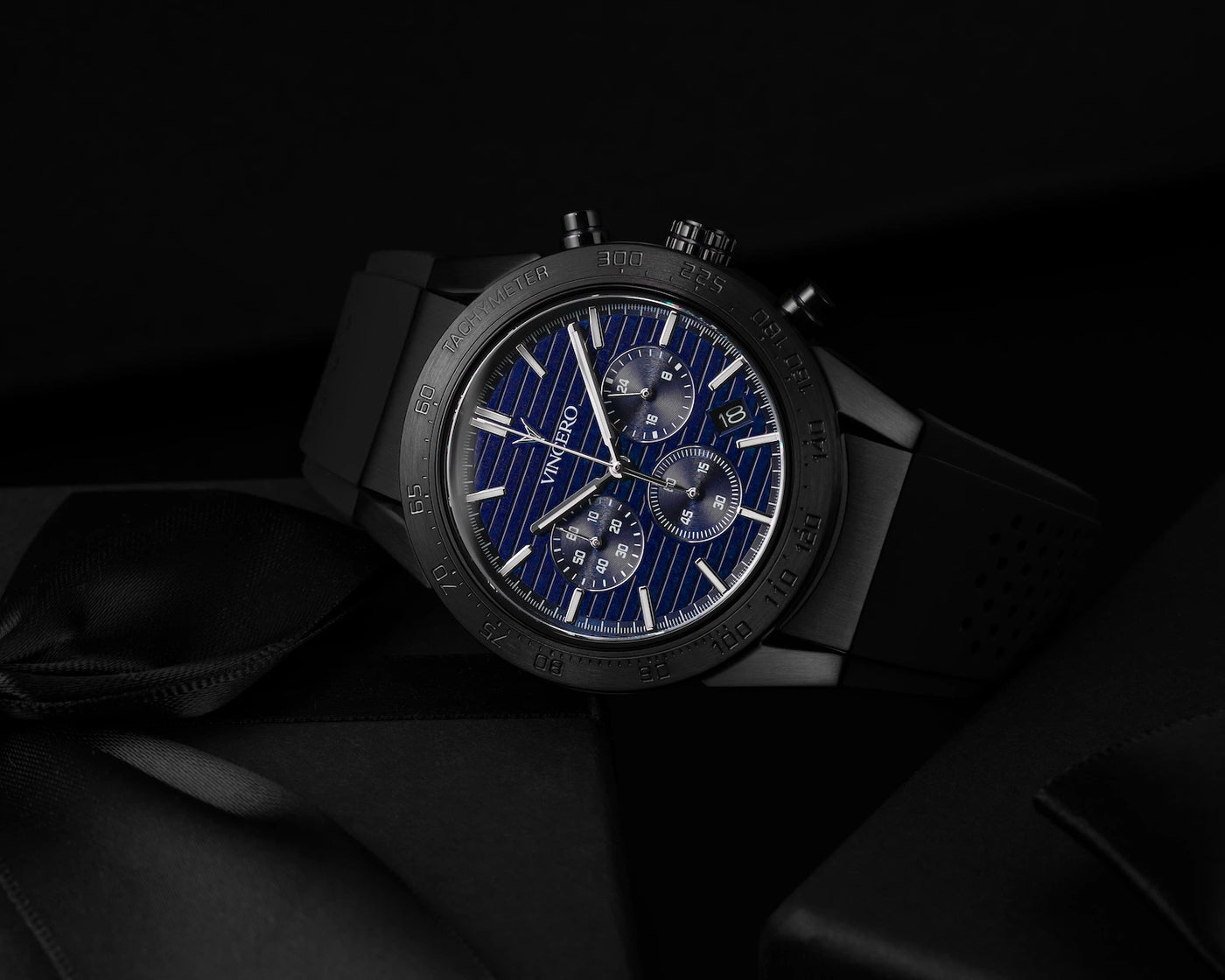 DescriptionAbyssal Blue. Forged In The Deep. The Rogue Racing Chronograph Blue Abyss Edition embodies the daring spirit of those who seek new horizons and conquer challenges. Its navy metallic dial represents the depth and vastness of the unknown, a call to adventure and relentless pursuit. Horizontal CNC lines on the dial offer a bold yet refined texture that catches the light with every move, showcasing the dynamic interplay of light and shadow. Encased in sleek black stainless steel and paired with a durable silicon rubber strap, the Rogue offers a stealthy yet commanding presence. This watch reflects an unwavering commitment to excellence and the drive to push beyond limits. LIMITED DROP - 150 Units
