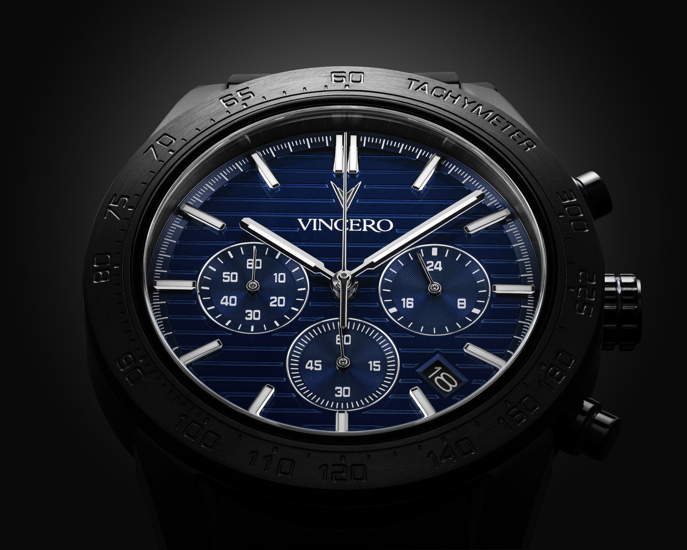 This is probably my fifth Vincero watch purchase. Looking at this watch, it is a very attractive timepiece. I love the face's rich blue face and the red hand dial as part of the Dual Time Pilot Watch is eye-catching. The only think I do not like about this watch is the sweat proof silicone strap. It is good that it is silicone maybe; however, the feel of it and actually strapping the watch on my wrist seems cheap. I understand why they offer purchasing different kinds of replacement watch straps during your purchase. I think the default band could be improved upon to actually coordinate with the look of the physical watch face.