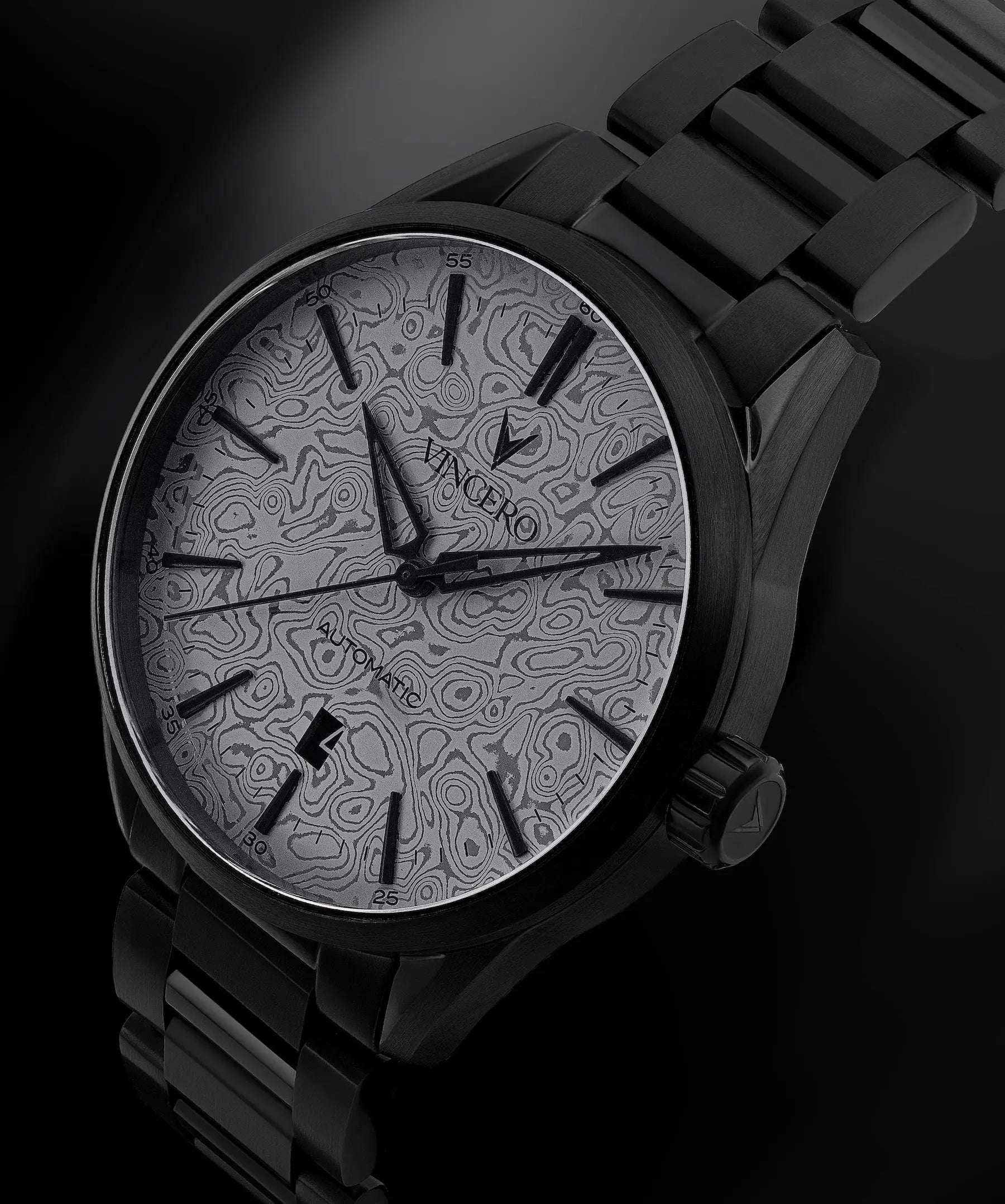 No two Damascus dials are the same. The pattern is created in the forge, not on a screen, so every face carries its own fingerprint. Each watch is one-of-one—unique to the man who wears it.
