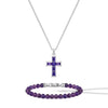 DescriptionConviction in Color A bold evolution of our best-selling stone cross, crafted for the modern man who stands out. This exceptional piece features six baguette-cut vibrant purple zircon stones forming the center of the cross, all set in solid 925 sterling silver for enduring strength and style. Purple Zircon Prized for its saturated violet color and remarkable clarity, purple zircon adds a refined edge to the piece. Durable and distinct, it’s a gemstone built to stand out for a lifetime. Embrace the power of intention with our Spiritual Bead Collection. Inspired by the prayer beads found in many cultures, these meaningful designs feature a variety of smooth, vividly colored stones, representing the union of symbolism and style.