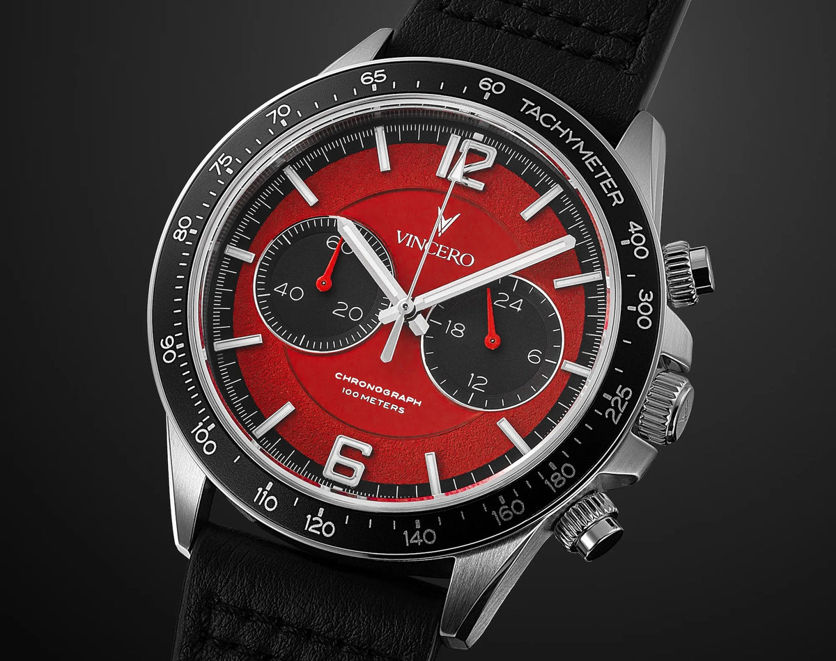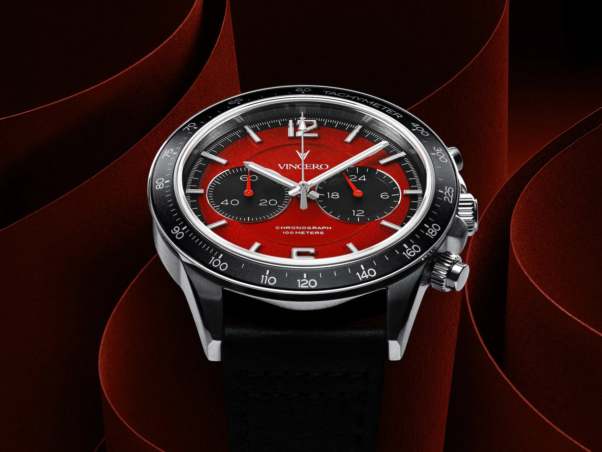 Infrared’s deep red dial and blackout subdials create a look that hits hard without overplaying its hand. Controlled. Calculated. Unmistakable.