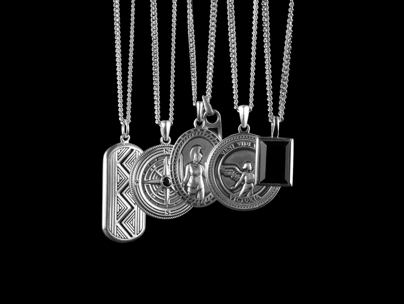 DescriptionInspired by the Greek goddess of wisdom - this pendant features a depiction of Athena as a reminder to seek wisdom in every aspect of life. Athena is pictured wearing her Corinthian plumed helm, grasping a spear in her right hand and an owl perched on her left. The onyx tag is inscribed with the moniker of this pendant - wisdom. The 925 Sterling Silver is built for daily wear and comes perfectly paired with a 1.7mm curb chain.