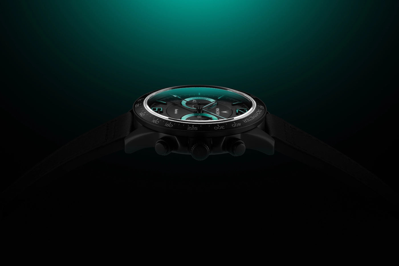 DescriptionLIMITED DROP - 300 Individually Numbered Units The Apex Aurora Nights Edition blends head-turning color and incredible durability, for an aggressive and edgy look that blends form and function. Like the dancing colors in the Arctic sky, the watch features vibrant bright blue lume on its hands and indices, creating a stunning visual spectacle in low light. The deep black hue of the timepiece symbolizes the night sky, while the chronograph functionality pays homage to the precision and dynamic movement of the aurora borealis. Simply watching the hands move is mesmerizing. The Aurora Nights is powered by the renowned VK64 Meca-Quartz from Seiko.