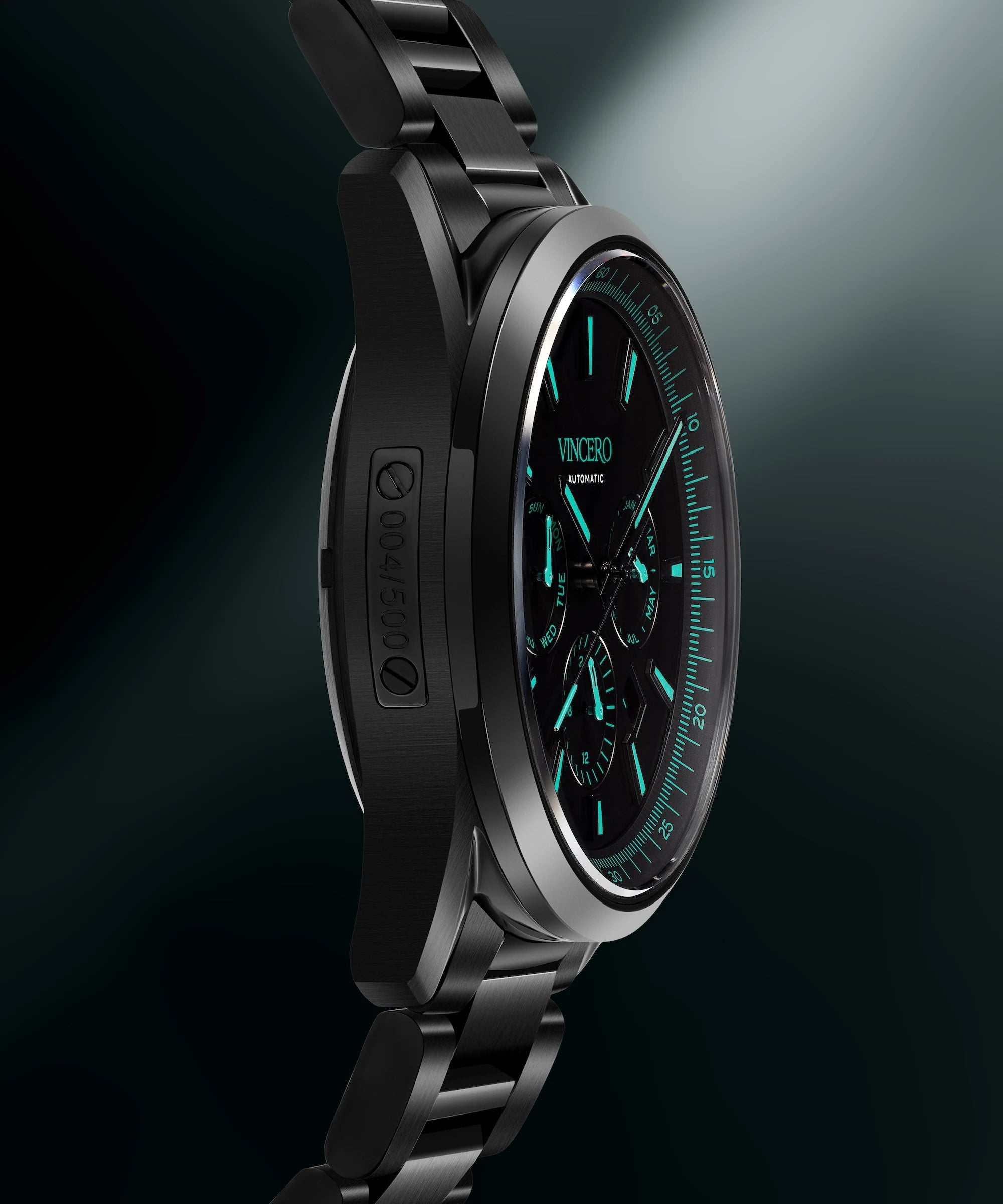 In the deepest dark, this emerald hue becomes the watch’s heartbeat. A streak of color cutting across the black expanse. A reminder that even in obscurity, you’re never without direction.