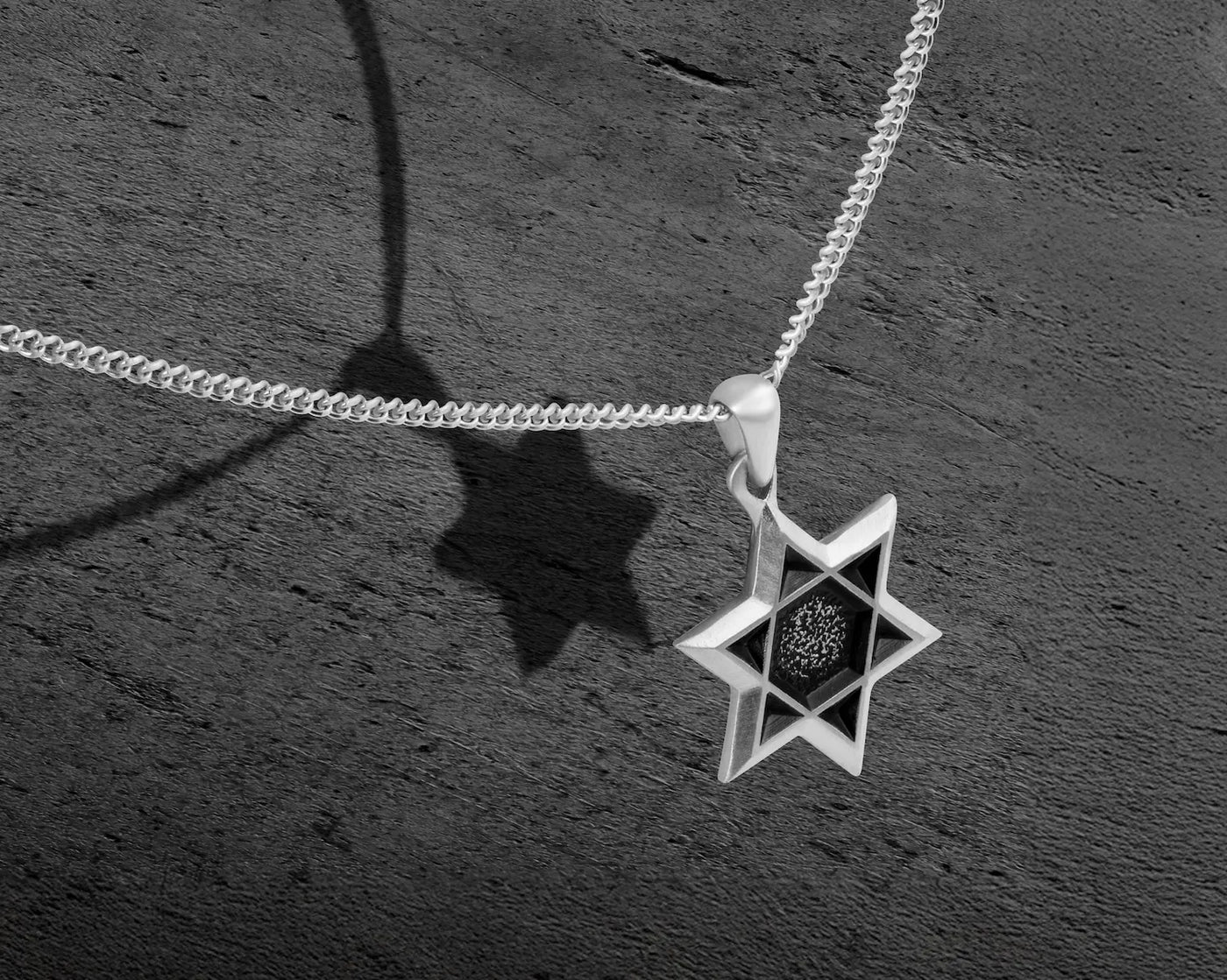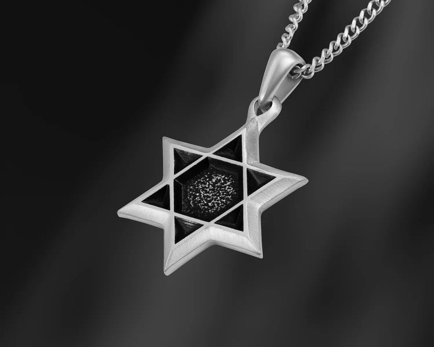 DescriptionWorn With Conviction This isn't your average Star of David. Crafted in surgical grade stainless steel with a brushed matte finish and a dimensional 3D structure, this pendant is built to stand out—and stand for something. The oxidized center adds raw texture and depth, echoing the grit behind the symbol. Suspended on a 1.77mm Cuban chain, the piece blends tradition with edge, designed to be worn with purpose—whether that purpose is personal, spiritual, or both. Made to last. Meant to mean something.