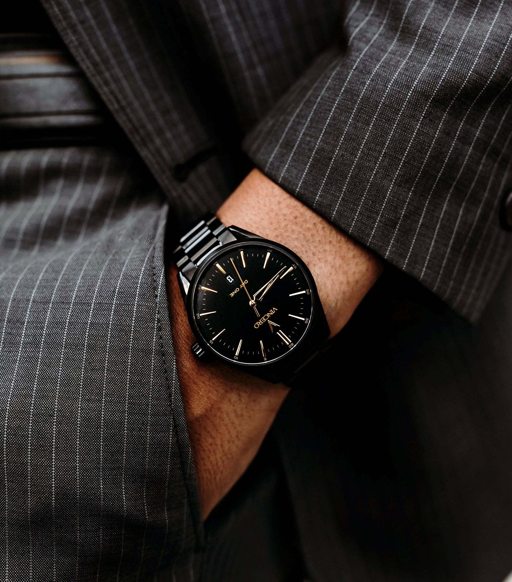 Shop the Day One Auto >Made to inspire you with just a glance, “Day One” is printed in gold directly on the face right above the date window display.